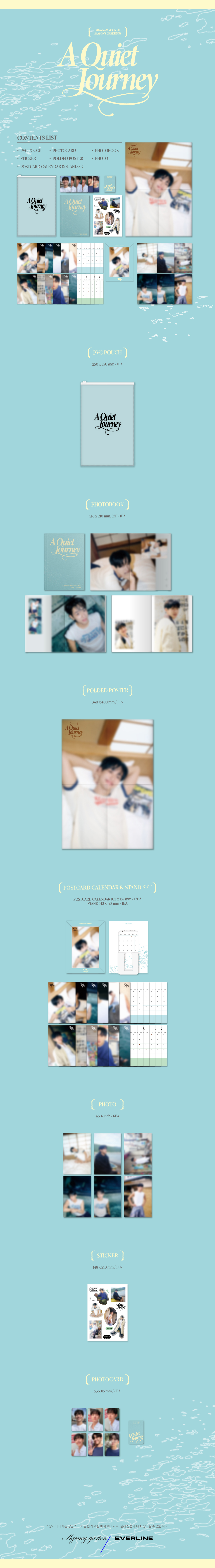 🕊 [南潤壽] 2026 SEASON'S GREETINGS [A Quiet Journey] ✅產品包括: PVC POUCH:250*350mm / 1ea PHOTOCARD :55*85 mm / 6ea 1set PHOTOBOOK : 148*210mm / 32p STICKER : 148*210 mm / 1ea FOLDED POSTER : 340*480mm / 1ea PHOTO : 4*6 inch / 6ea 1set POSTCARD CALENDAR & STAND SET : POSTCARD CALENDAR : 102*152 / 12ea 1set STAND : 143193 mm / 1ea - - $375 ✨本店並不負責任何卡瑕 ✨2026年11月30日21:00 Cut單 ✨價錢已包2KG國際運費, 超重時需補款每半公斤$20 ✨官方將於12月23日後順序發貨 ========== ❣️Phoebechin 網站上線喇 ❣️ 🕊️https://phoebechin.boutir.com/ 🕊️網站陸續更新中, 歡迎去網站自助落單呀! ========== 🐿購買前煩請務必閱讀: phoebechin_rules ▶️接受匯豐, Payme, FPS, 支付寶HK ▶️一經成功代購後, 恕不設退貨退款, 敬請體諒 ▶️小店只負責代購, 怒未能負責有關產品品質及保養問題 ▶️國際及本地寄運過程皆有風險, 請買家自負