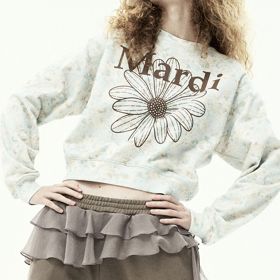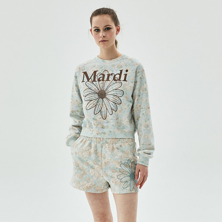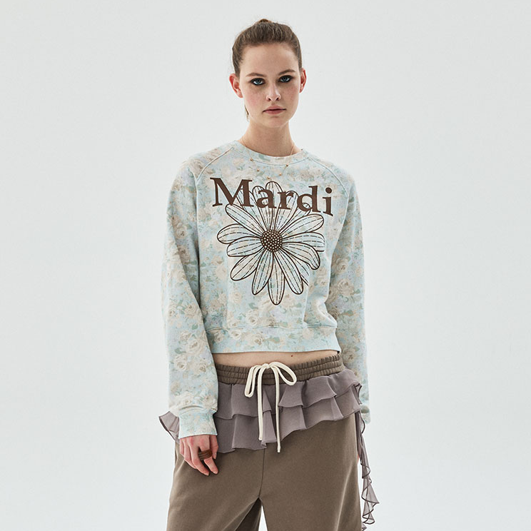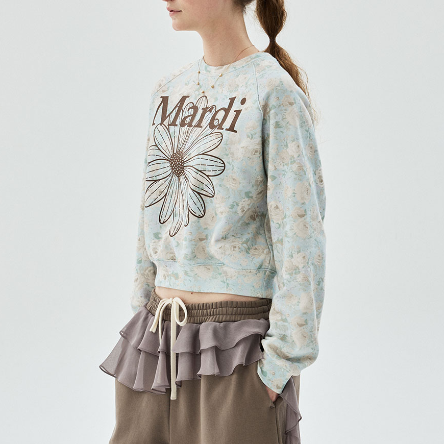 [Mardi Mercredi] SWEATSHIRT RAGLAN FLEUR FLOWERMARDI_MINT BROWN