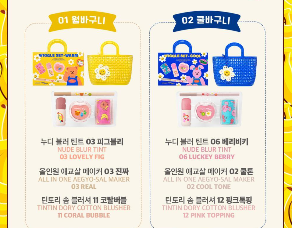 🕊️ [Wiggle Wiggle x colorgram] NUDE BLUR TINT WIGGLE WIGGLE SET (2款) 01 (YELLOW) 產品包括: ✅NUDE BLUR TINT 03 ✅ALL IN ONE AEGYO-SAL MAKER 03 ✅TINTIN DORY COTTON BLUSHER 11 ✅籃仔 ✅Hair Roll ✅額外加送Silicon Charm x 1 02 (BLUE) 產品包括: ✅NUDE BLUR TINT 06 ✅ALL IN ONE AEGYO-SAL MAKER 02 ✅TINTIN DORY COTTON BLUSHER 12 ✅籃仔 ✅Hair Roll ✅額外加送Silicon Charm x 1 - - 限時優惠: $168 原價: $268 ✨價錢已包國際運費 ========== ❣️Phoebechin 網站上線喇 ❣️ 🕊️https://phoebechin.boutir.com/ 🕊️更多產品放左係網站, 快d上去睇下啦! ========== 🐿購買前煩請務必閱讀: phoebechin_rules ▶️接受匯豐, Payme, FPS, 支付寶HK ▶️一經成功代購後, 恕不設退貨退款, 敬請體諒 ▶️小店只負責代購, 怒未能負責有關產品品質及保養問題 ▶️國際及本地寄運過程皆有風險, 請買家自負