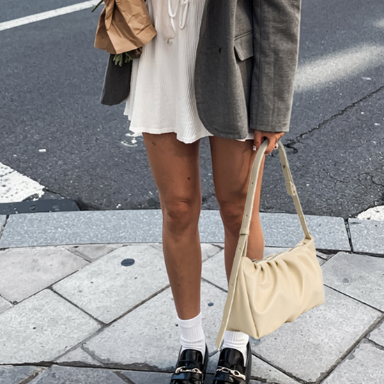 [eif] Leather Shirring Shoulder & Cross Bag (3種)